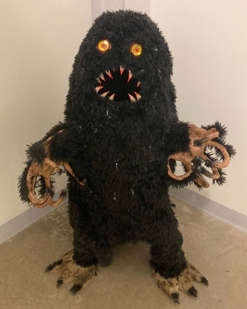 “I’ve aspired to have a solo show since my freshman year of college,” Carnahan-Curcio said. “I didn’t know I would be making creatures until January of 2024, when I made my first painting about my mom who has stage 3A breast cancer; it then spiraled into a series about grief and how people cope with it. I struck gold with my painting ‘Der Doppelgänger,’ as he became the face of my series.”