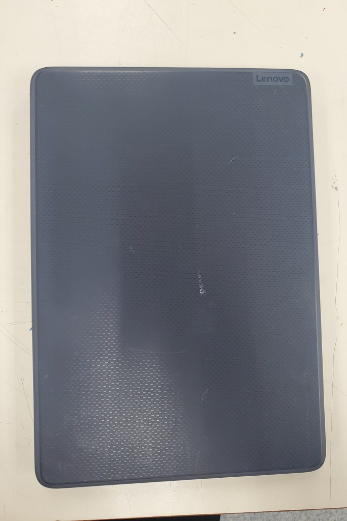 The exterior of a students’ old laptop