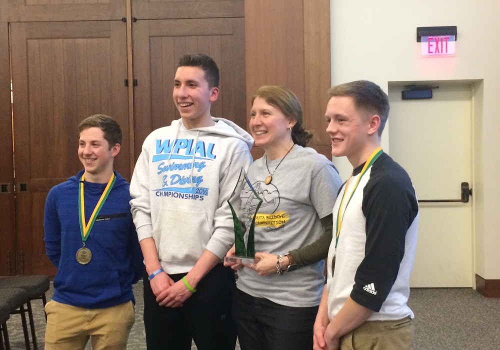 [Featured Image: The winners of Carbone’s Spaghetti Bridge Engineering competition pose with their awards. Pictured Left to Right: Ian Merendino, William Crites, Mrs. Cheryl Harper, Christopher Writt]