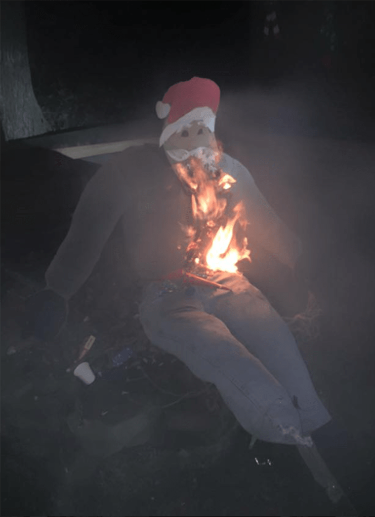 In Peru, families create dolls or scarecrows called muñecos that resemble a person and place them outside their homes. They are often modeled after political figures or family members. At midnight, on New Year’s Eve, with fireworks or just fire, each muñeco is burned away.
