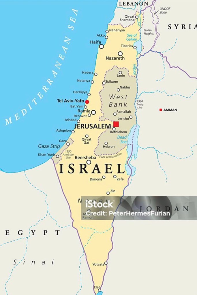 A map of Israel that shows the Gaza Strip.