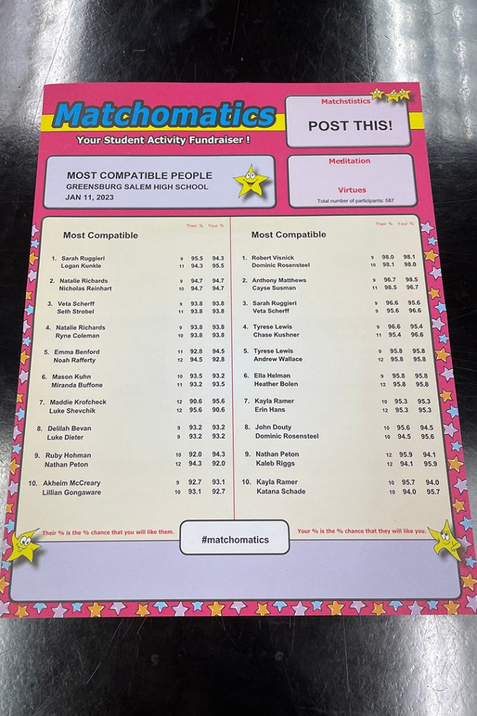 The papers will show students who are most compatible and then birthday trivia on the back. Results will still be available to buy until February 15th.