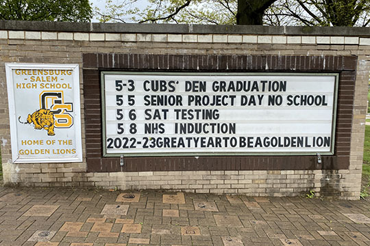 Markquee outside of the High school that lists important events: Photo by: Theresa Schuetz