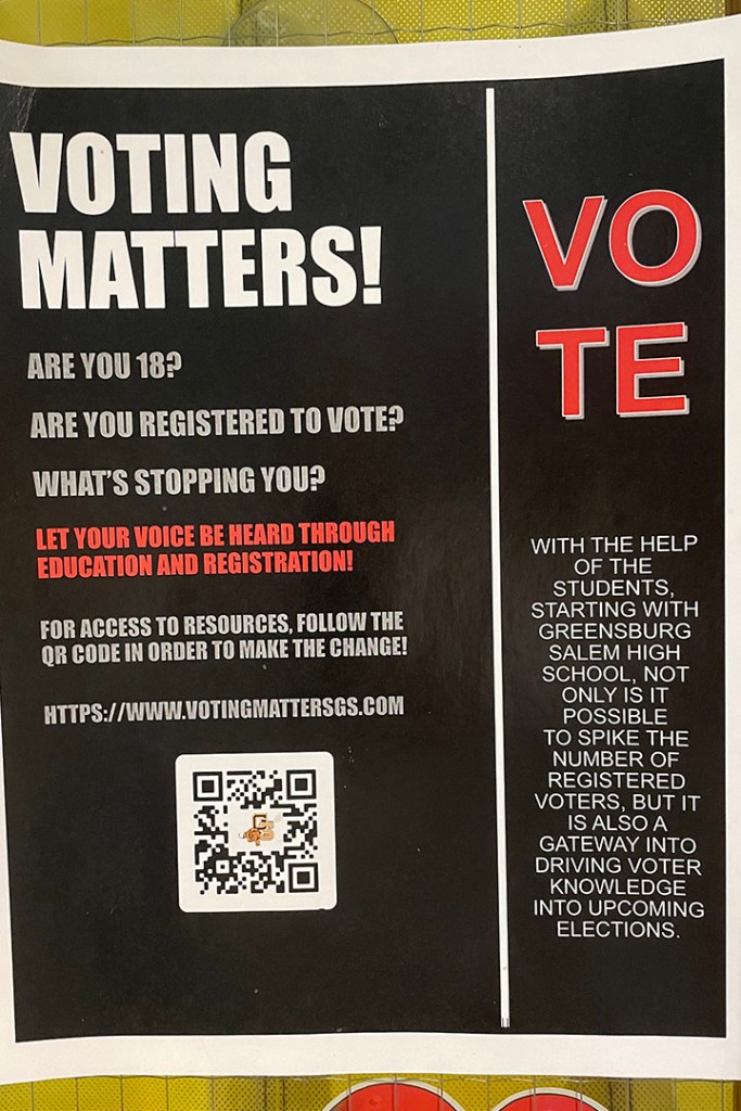 A poster outside the Library encourages students to register to vote.
