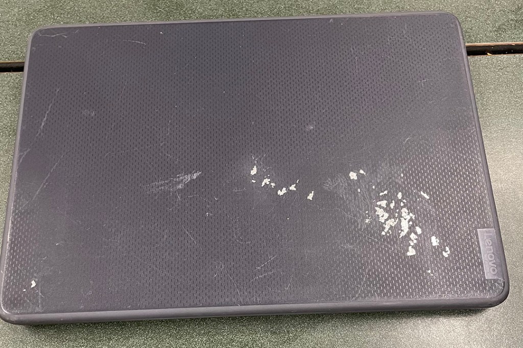 The exterior of a students’ old laptop
