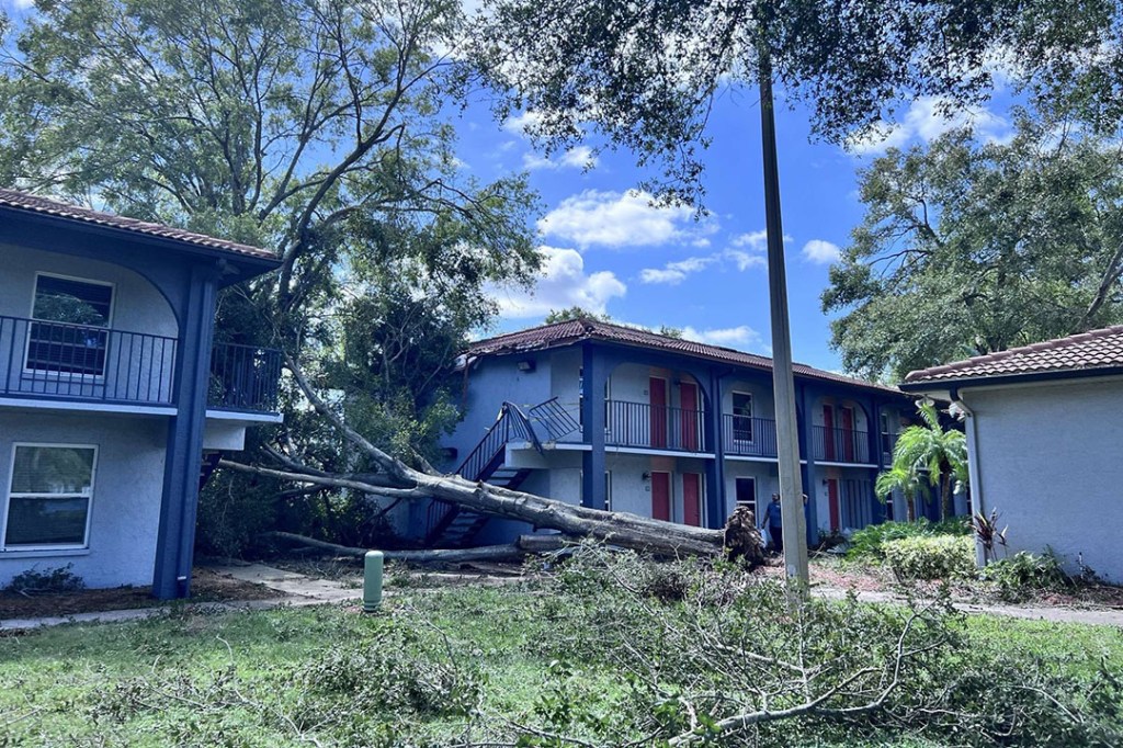 “An approximately 80 foot pine tree collapsed in my back yard,” she said. “It did not hit the house, so there was no structural damage. We had the tree removed on Monday, just shy of two weeks after the storm.”